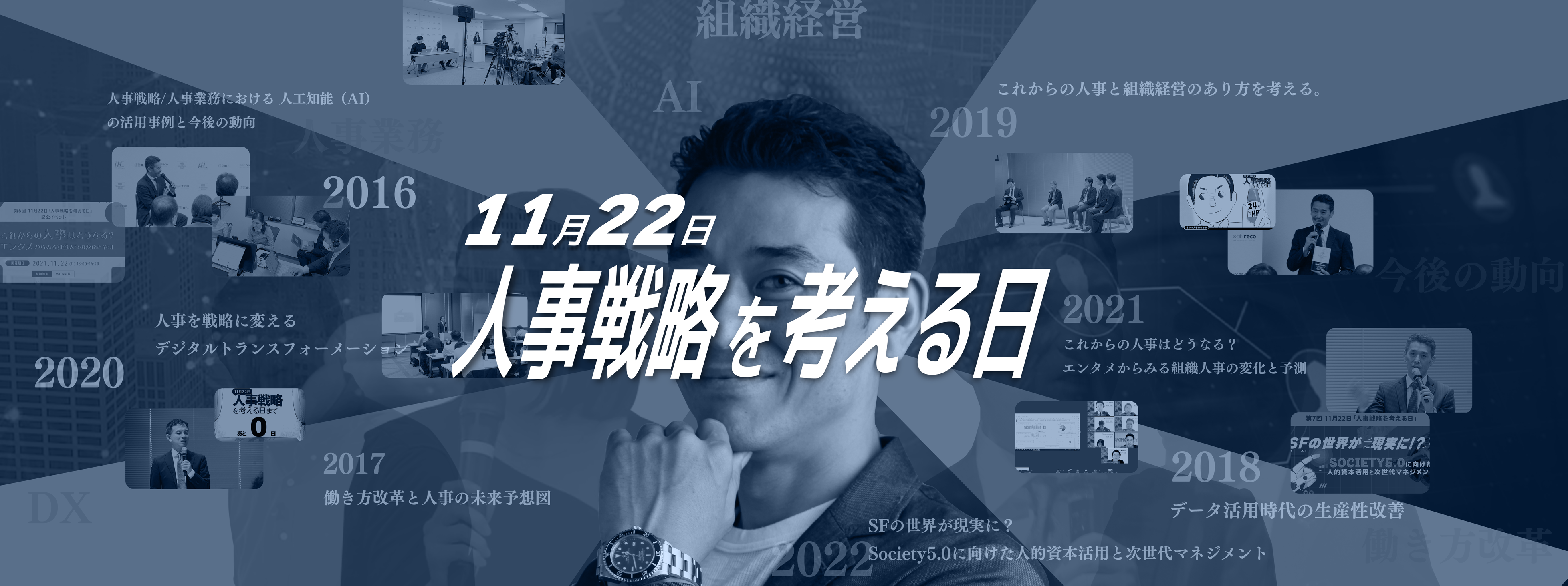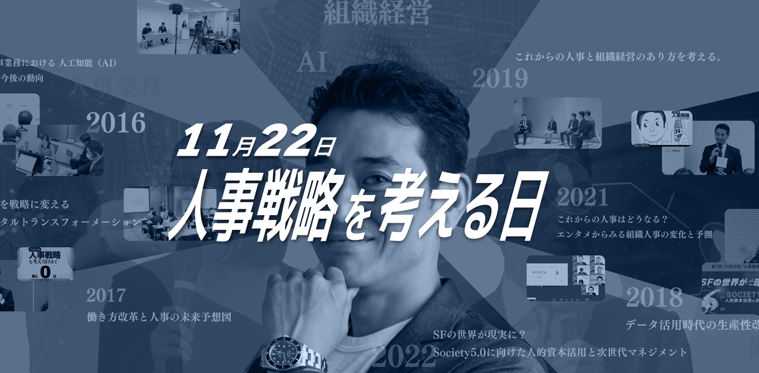 これからの人の働き方や会社での活躍の仕方・させ方を考え、より良い人事のあり方を検討する機会を持っていただきたいという想いから、アクティブ アンド カンパニーグループでは、11月22日を『人事戦略を考える日』として、"記念日登録"をしております。 株式会社アクティブ アンド カンパニーは、『⼈事戦略を考える⽇(11⽉22⽇)』に合わせて、記念イベントを毎年開催致します。