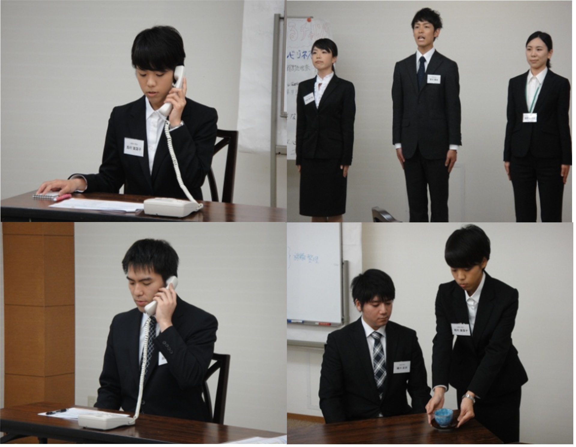 プログラム中はビジネスマナーの実技課題を達成するために、研修時間外にも自主練習を行なう様子が見られました。その中で相互に指摘し合ったり、自発的に自分の役割を見つけてそれを担う等の行動があるなど、目的としていた社会人としての意識転換を実現することができました。