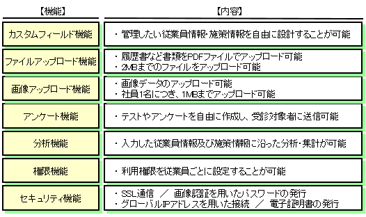 社員の住所や連絡先等の基本情報を入力・管理すると同時に、社員の在籍年数・職務経歴・評価変遷の情報を管理しています。これら3つの情報を管理・蓄積し続けることで、弊社のハイパフォーマー人材(評価が高い人、昇格が早い人)の傾向や、ローパフォーマー人材(評価が低い人、昇格できない人)の傾向が可視化されるよう になりました。