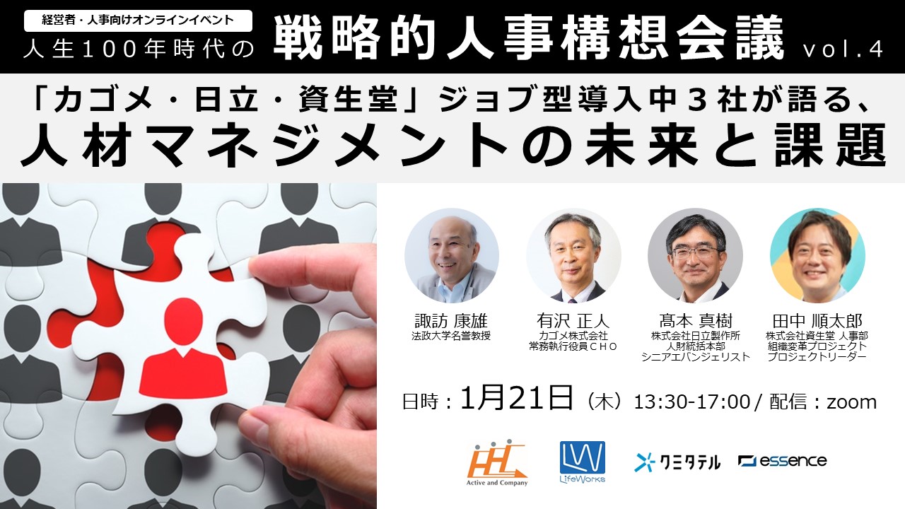 人生100年時代の 戦略的人事構想会議 vol.4 「カゴメ・日立・資生堂」ジョブ型導入中の3社が語る、人材マネジメントの未来と課題