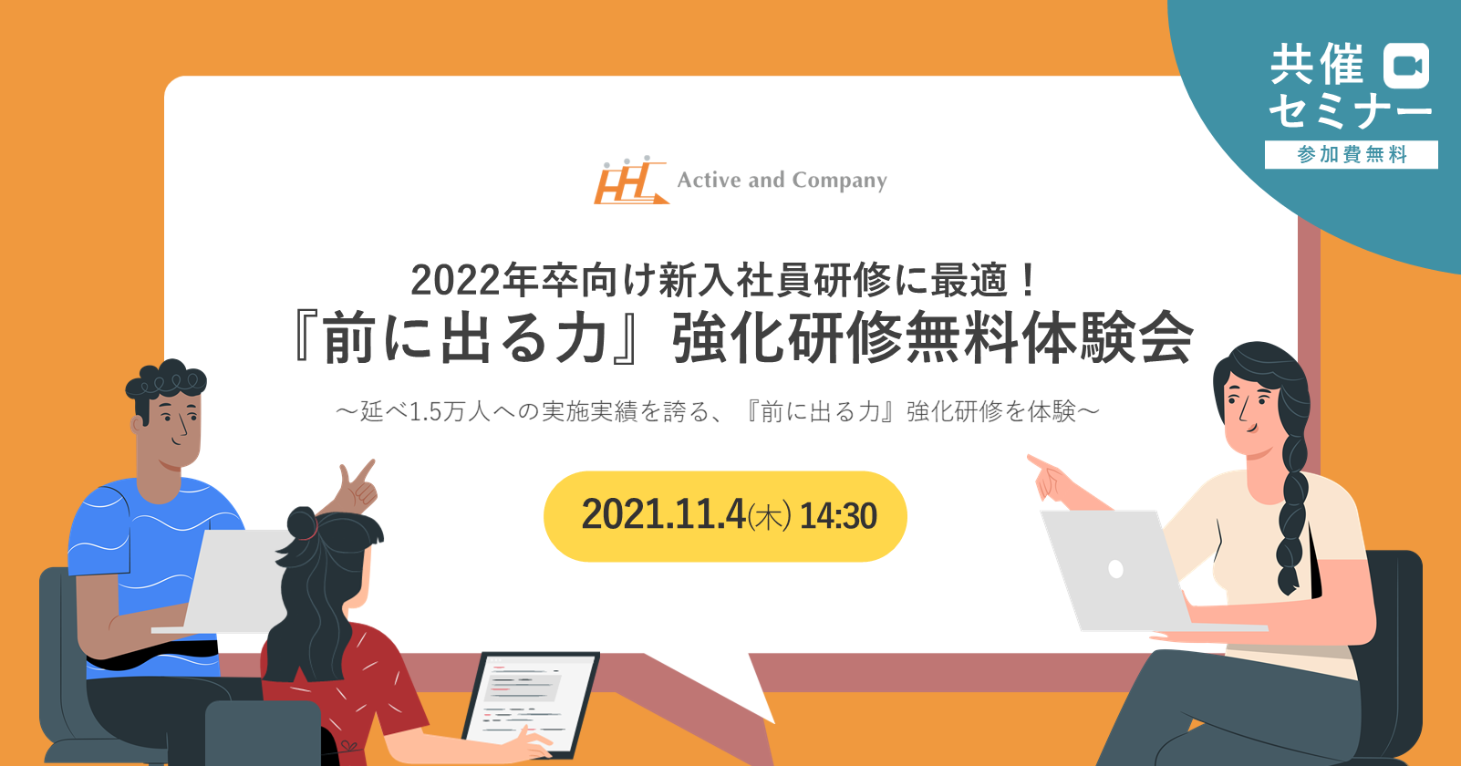 新入社員研修のひとつとして、是非この主体性を育む『前に出る力』強化研修を視野に入れて頂きたく、この度、体験会として実施させて頂きます。