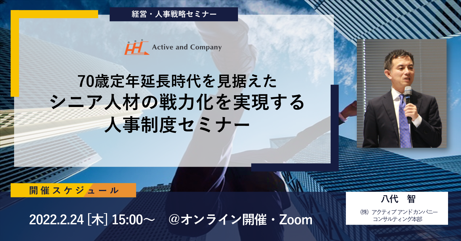 本セミナーでは、シニア人材活用に向けた「制度設計のポイント」と「陥りやすい“落とし穴“」を最新事例を交えてご紹介いたします。