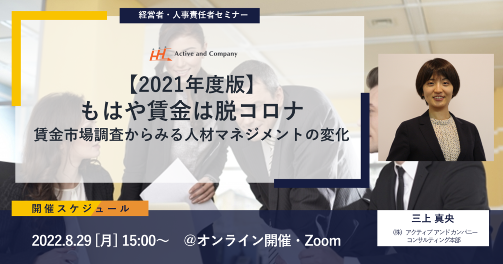本セミナーではレポート公開記念として、例年同様2021年度の報酬傾向の比較分析結果をご報告するとともに、人材マネジメントの変化の実態に迫ります。