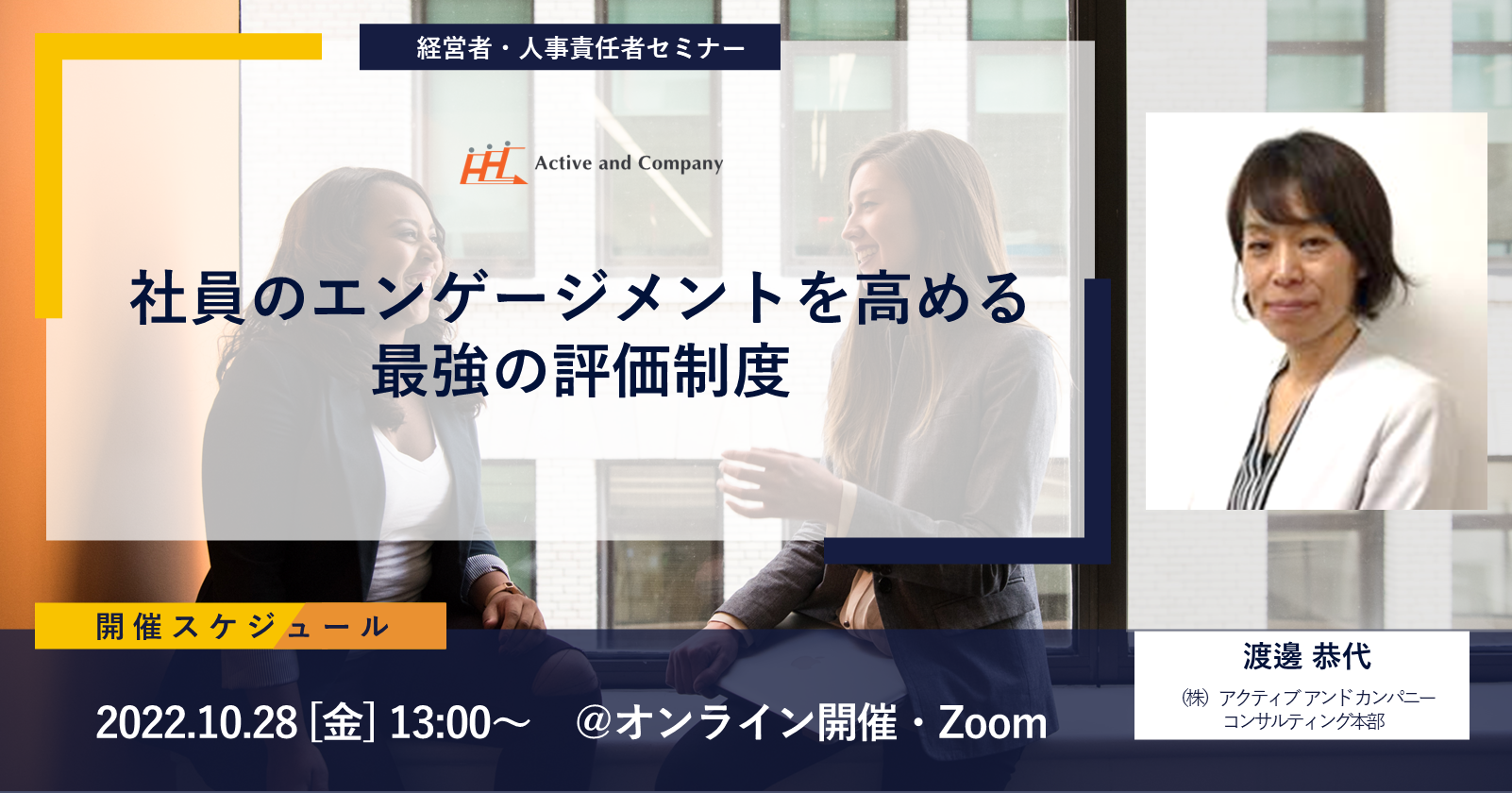 本セミナーでは、社員のエンゲージメントを高める評価制度の設計と運用に焦点をあててセミナーを開催いたします。