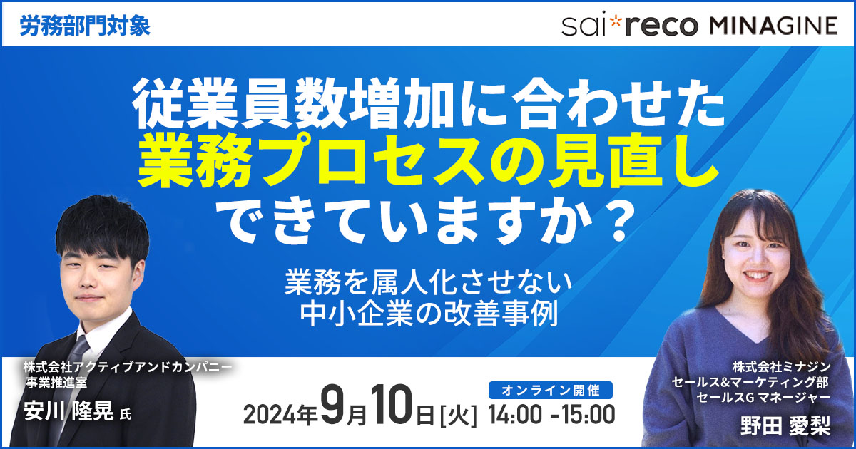 【労務部門対象】従業員数増加に合わせた業務プロセスの見直しできていますか?~業務を属人化させない中小企業の改善事例~