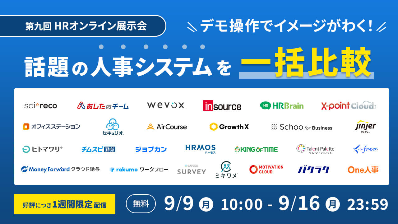 【期間限定配信】第九回HRオンライン展示会~話題の人事システムを一括比較~