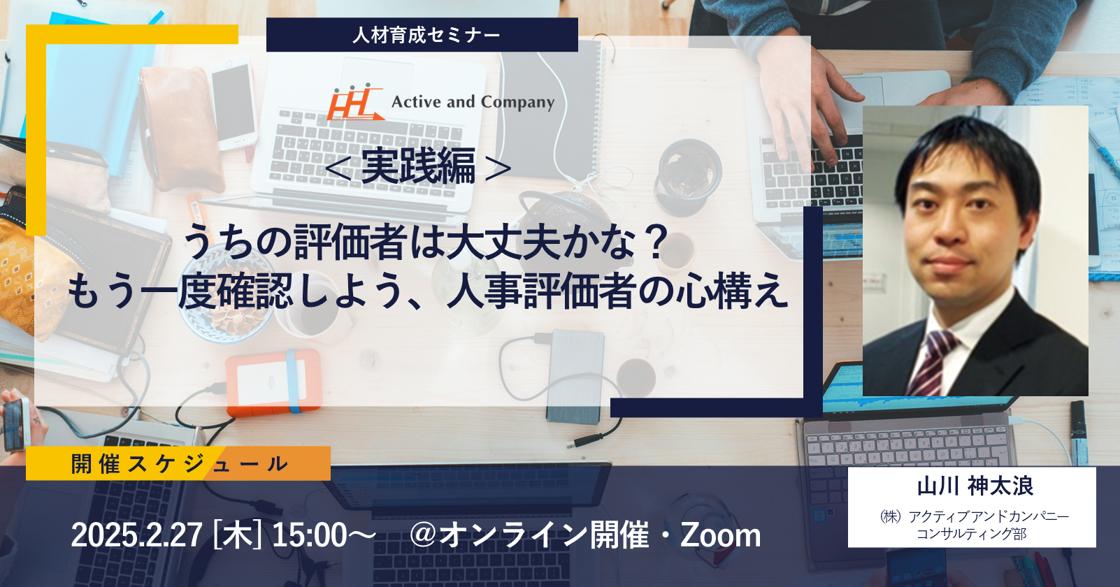 今回のセミナーでは、もう一度人事評価(評価面談)の基本となる心構えについて説明していきます。自社の評価の在り方を見直し、研修ご検討の一助になれば幸いです。
