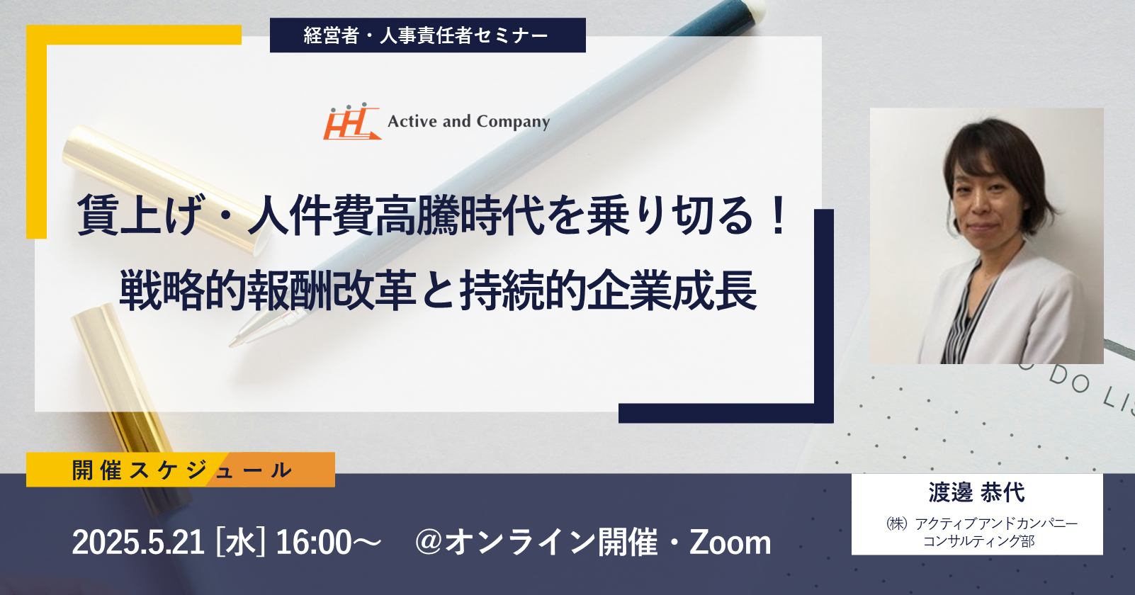 本セミナーでは、「賃上げできる会社とできない会社の違い」を明確にし、報酬制度を企業成長の武器として活用する方法を解説します。