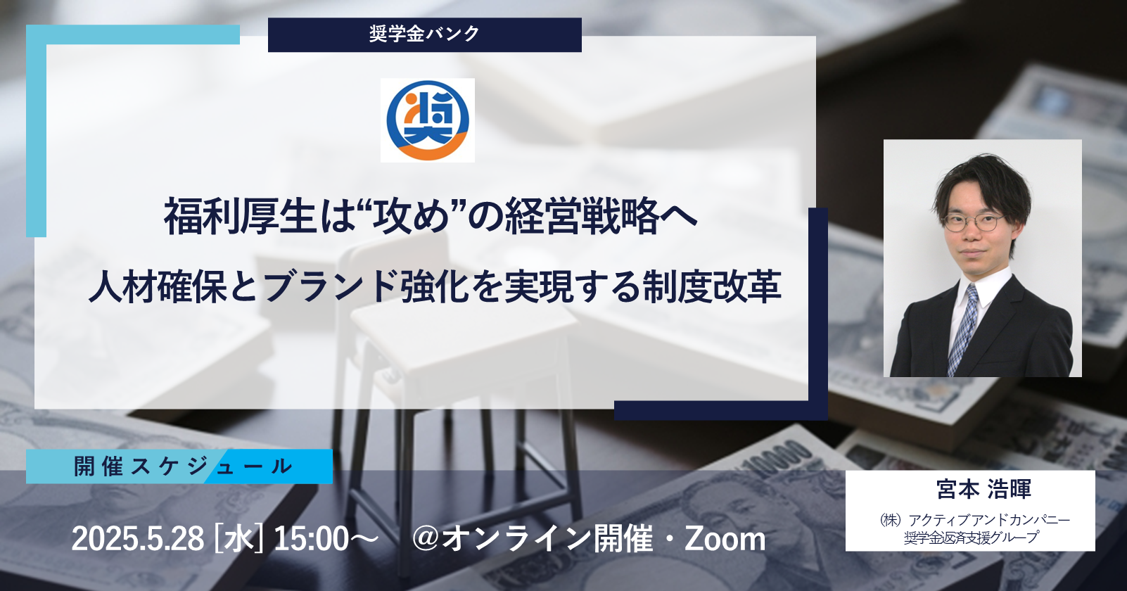 本セミナーでは、福利厚生の歴史から最新トレンドまでをおさえたうえで解説します。また、実際に導入企業で成果が出ている「奨学金返済支援制度」も取り上げ、目的や実態、社員の声などを交えてお話しします。