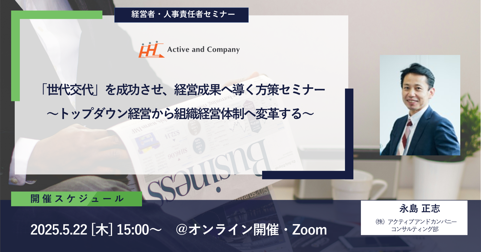 「世代交代」を成功させ、経営成果へ導く方策セミナー ~トップダウン経営から組織経営体制へ変革する~