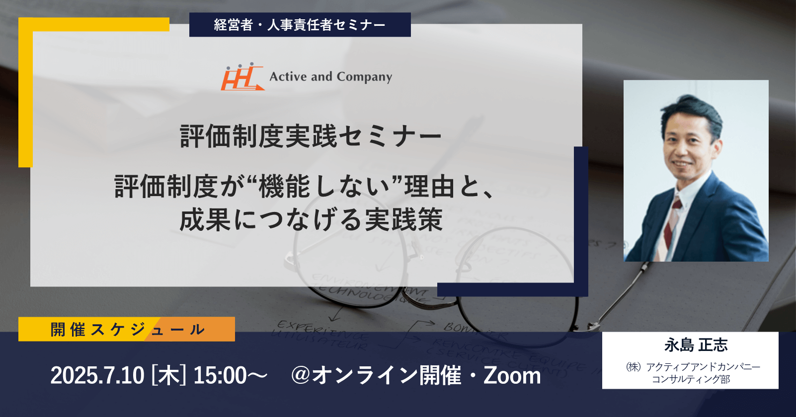 本セミナーでは、評価制度を運用する際に発生する様々な阻害要因を事前に理解し、事業の推進と社員成長の同時達成を導くために必要な方策を紹介します。