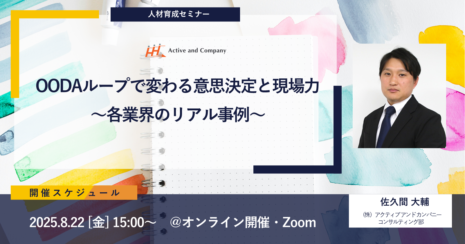 本セミナーでは、それぞれの業界での具体的なOODAループ活用事例をご紹介しながら、「現場で本当に使える意思決定と行動」の考え方をお伝えします。