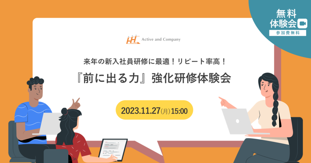 Pick Up! 4月 02 2026/04/02 9:30 - 18:00 株式会社アクティブ アンド カンパニー 本社 HR領域-⼈材育成研修プログラム 【新入社員の即戦力化!】公開型新入社員研修2.5日 自分の殻を破る新人研修! 集合型新入社員研修2.5日のご案内 ・一般的な新入社員研修とは一味違った研修を受けさせたい! ・新入社員のうちから外部講師にみっちり社会人の基礎を教え込んでほしい! ・新入社員の人数が多いわけで […]