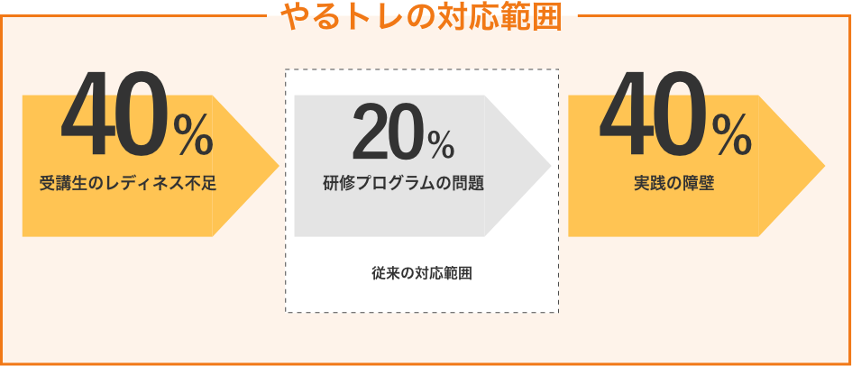 やるトレは、今までの「研修」という視野ではなく、「人材開発」という視野でカバーするプログラムです。