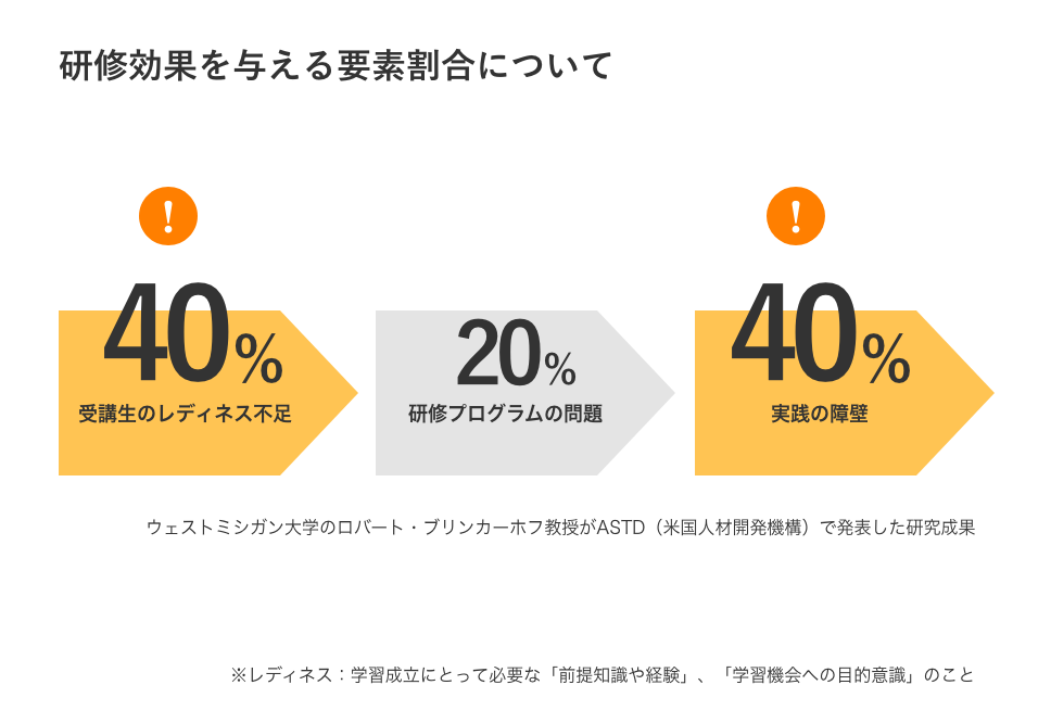 学びが実践されない原因の8割は「研修プログラム以外の問題」である可能性が示されています。