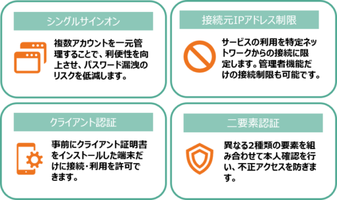 昨今、業務効率化やデジタル化を目的としたWebサービスやクラウドサービスが広く普及し、その種類や導入率は年々増加傾向にあります。しかしながら、インターネットを前提としたクラウドサービスでは、第三者による不正アクセスや不正利用、ID・パスワードの漏洩、データ改ざんなど、情報セキュリティ上のさまざまなリスクが存在します。こういったリスクへの対策を講じることは、企業にとって喫緊の課題と言えます。