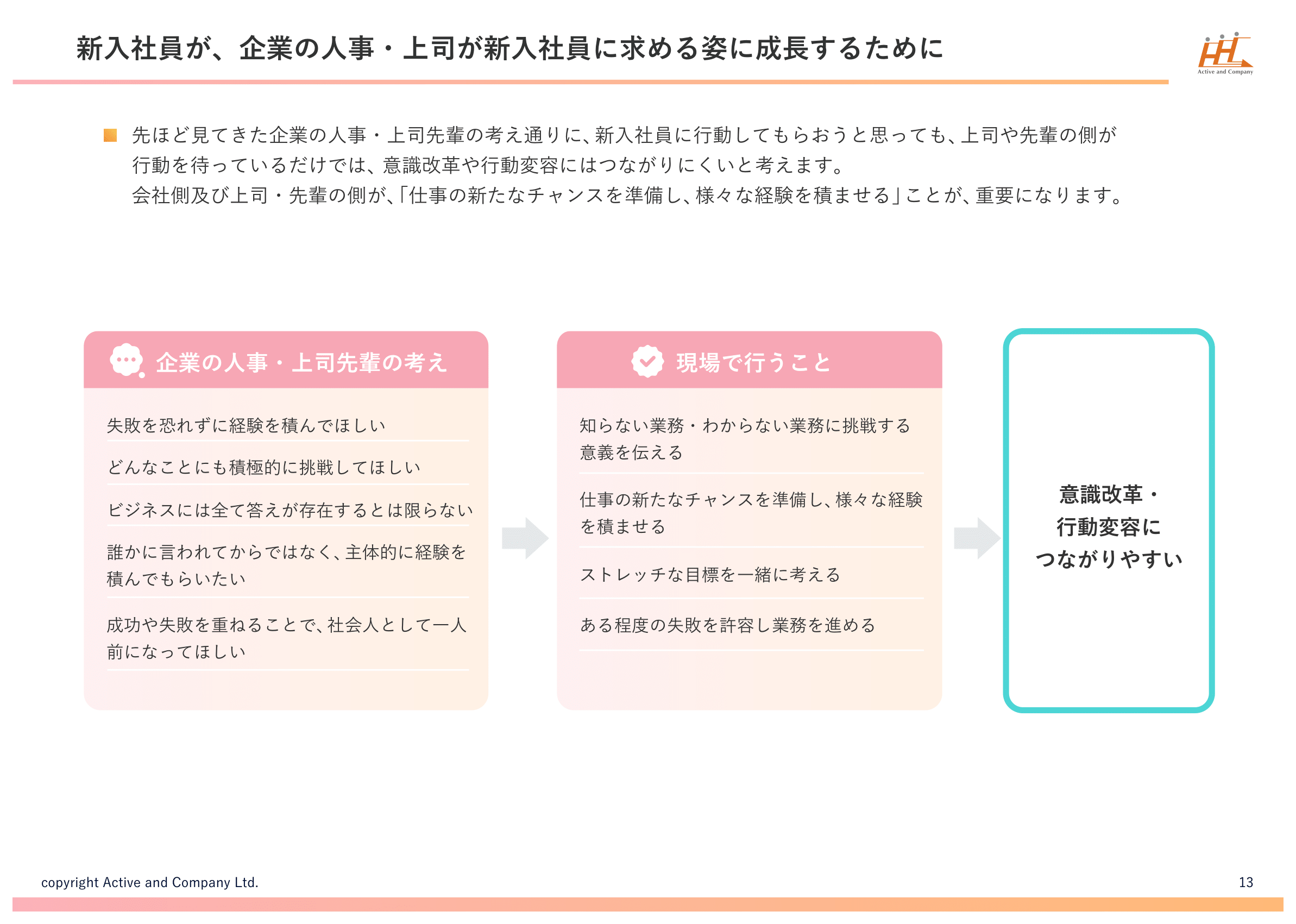 ・新入社員が、企業の人事・上司が新入社員に求める姿に成長するために