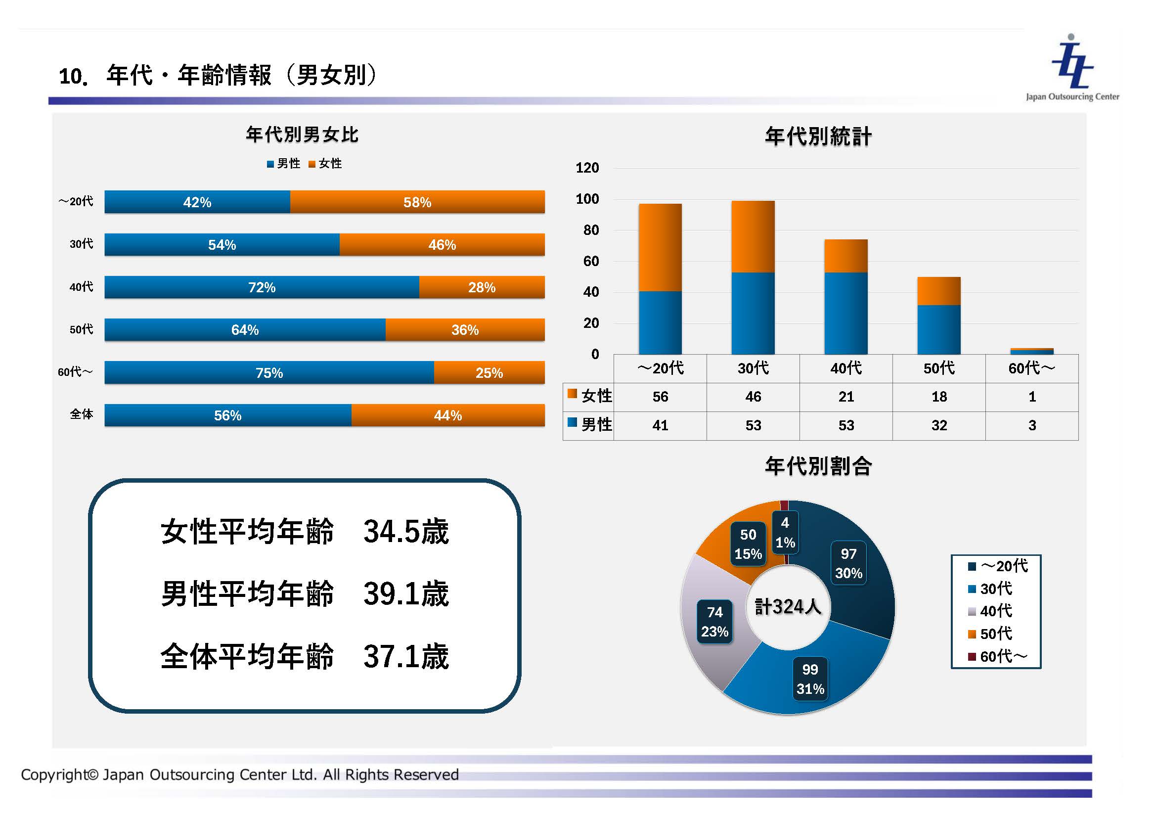 そこで日本アウトソーシングセンターでは、給与計算アウトソーシングで蓄積された人事・労務データを活用し、人的資本経営を支援する『人的資本レポート』をクライアント向けに無償で提供いたします。本フォームから、サンプルをダウンロードいただけます。