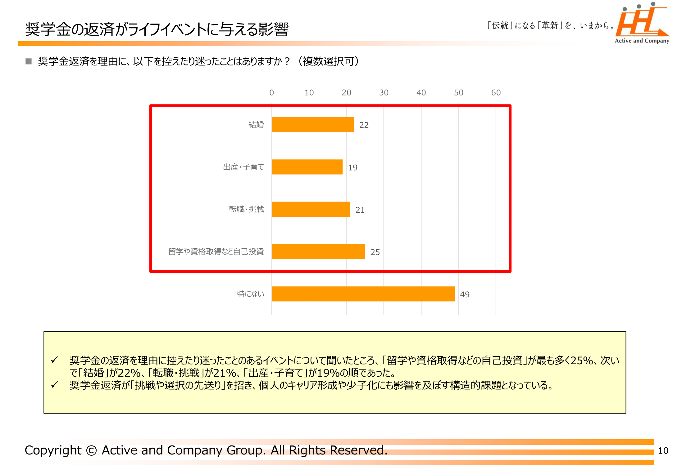 奨学金を返済中の20代~40代の男女100名を対象に、奨学金返済がもたらす負担に関するアンケート調査を実施し、奨学金返済が単なる経済的な負担に留まらず、若手社会人の日常的な心理的ストレスとなり、健康、キャリア形成、ライフイベント、さらには社会参加にまで広範な影響を及ぼしている実態が明らかになりました。こうした結果から、奨学金返済は個人のライフスタイルだけでなく、採用競争力や定着率、組織エンゲージメントにも関わる大きな課題であることが見えてきます。
