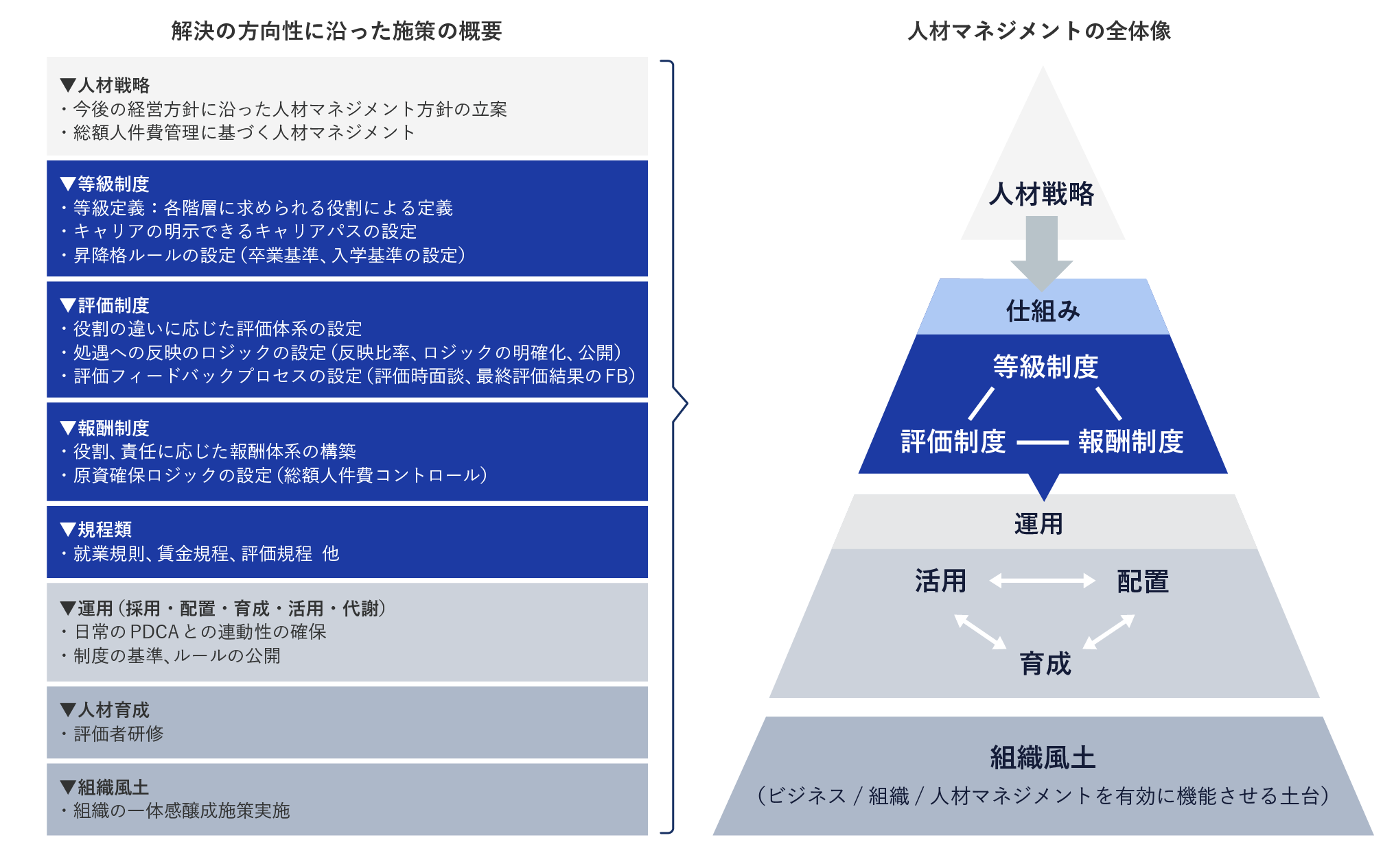 人材マネジメントの全体像を把握した上で人事制度構築に着手します。