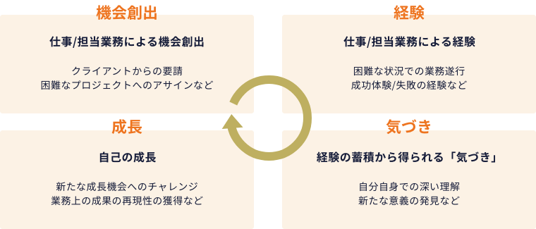 疑似体験や日頃の行動の振り返りを通して、管理者に求められるリーダーシップのあり方の理解を促進し、 組織を牽引するリーダーシップの育成を行います。